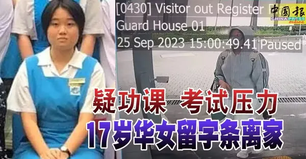 疑功課考試壓力 17歲華女留字條離家
