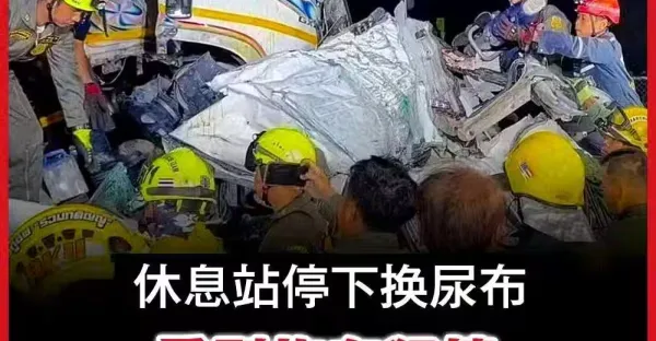休息站換尿布遭拖車猛撞 ,10人家庭8死2重傷!