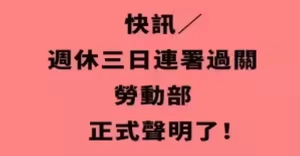 快訊/周休三日連署過關, 勞動部正式聲明了!