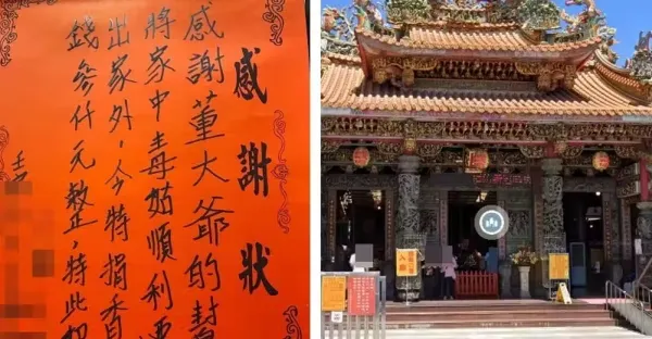 老天也看不過去?人妻捐3000元「「叩謝董大爺」趕走毒姑! 」 在地人秒懂「難怪香火鼎盛😎廟牆滿滿感謝狀」:準備開團
