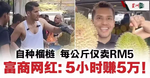 自種榴槤 每公斤僅賣RM5 富商網紅:5小時賺了5萬令吉!