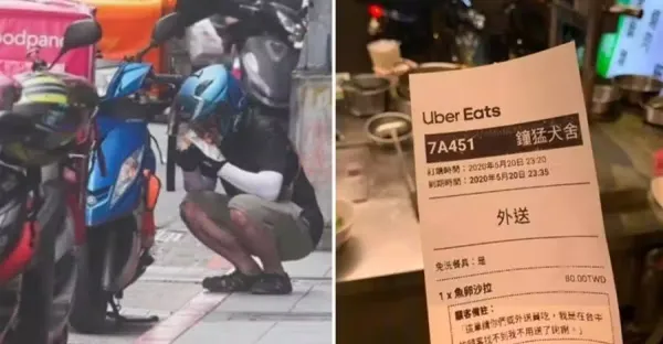 最暖驚喜!外送員領餐發現「收件者是自己」下秒獨坐路旁「邊吃邊擦淚」內幕讓人鼻酸