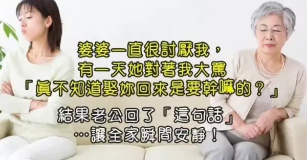 婆婆一直很討厭我,有一天她對著我大罵「真不知道娶妳回來是要幹嘛的?」結果老公回了「這句話」…讓全家瞬間安靜了!