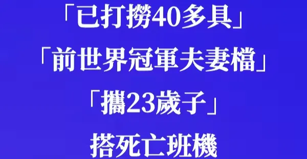 67人罹難「已打撈40多具」!「前世界冠軍夫妻檔」攜23歲子搭死亡班機 一家三口殞命!
