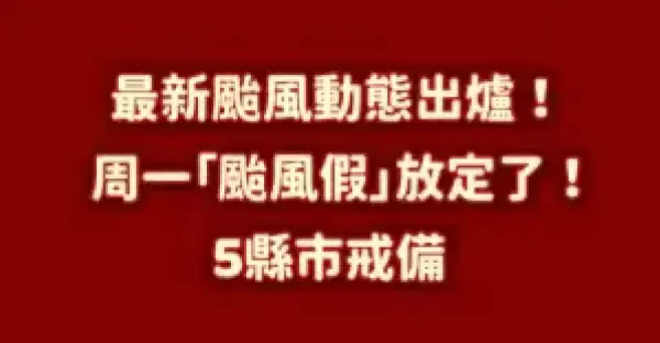 快訊/最新颱風動態出爐了! 周一「颱風假」放定了! 5縣市戒備!