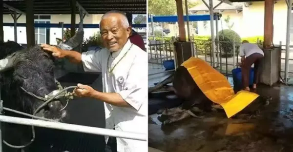 117歲老水牛苦撐只為了,見主人最後一面,台南阿公撫牛淚崩:找個好人家投胎