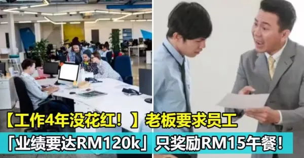 【工作4年沒花紅!】老闆要求員工「業績要達RM120k」只獎勵RM15午餐!