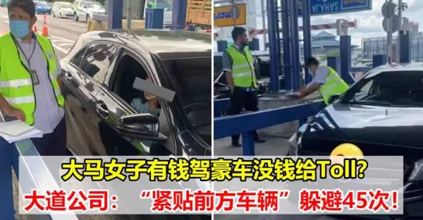 大馬女子有錢駕豪車沒錢給Toll?大道公司:「緊貼前方車輛」躲避45次~