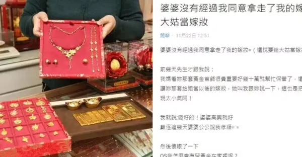 婆婆隨意拿走金飾!要老公轉告「將來當大姑嫁妝」:別計較太多 她一聽愣住「房間沒有黃金啊」 真尷尬