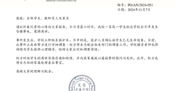 芙中驚傳16歲學生墜樓亡