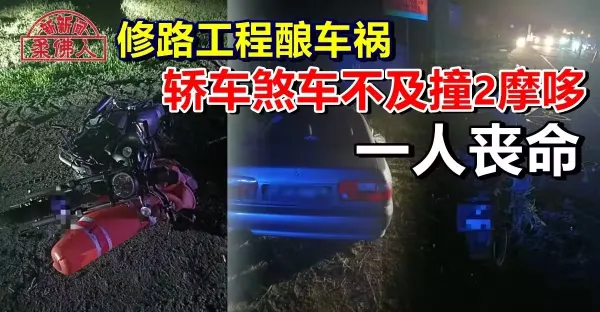 修路工程釀車禍 轎車剎車不及撞2摩哆 一人喪命
