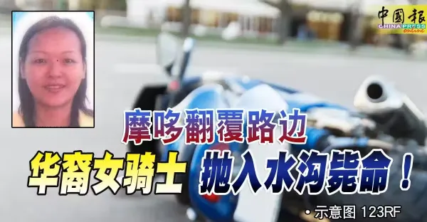 摩哆翻覆路邊 華裔女騎士 拋入水溝斃命!