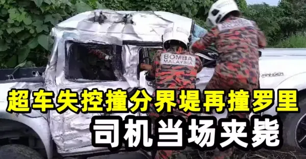 超車失控撞分界堤再撞羅里 司機當場夾斃