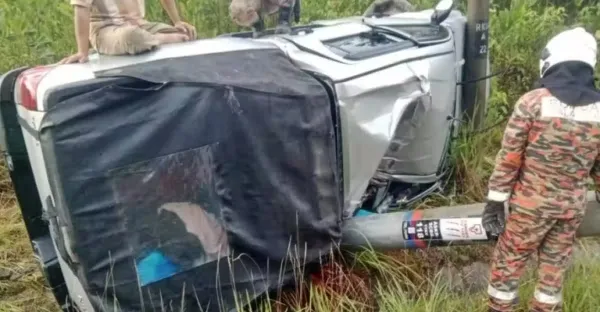 四驅車失控撞電線桿翻覆 一家五口1死4輕重傷