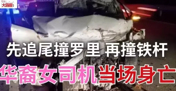 先追尾撞羅里再撞鐵桿 華裔女司機當場身亡