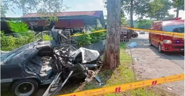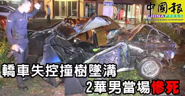 轎車失控撞樹墜溝 2華男當場慘死