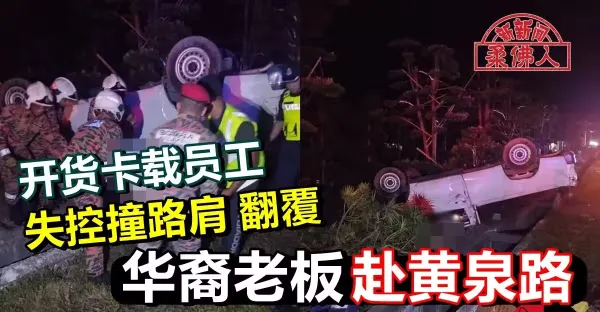 開貨卡載員工 失控撞路肩 翻覆 華裔老闆赴黃泉路