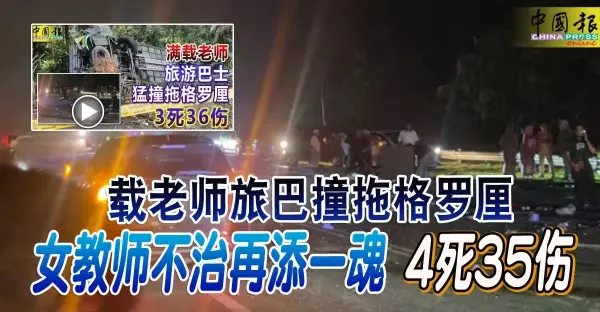 載老師旅巴撞拖格羅厘 女教師不治再添一魂 4死35傷
