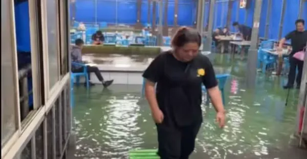 釣蝦場淹水!釣客「繼續聊」畫面違和 網笑:沉浸式體驗