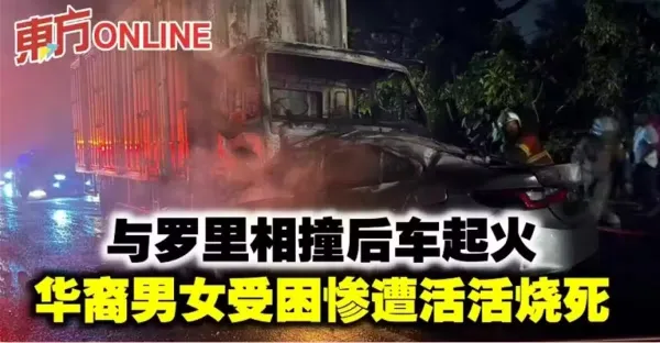 與羅里相撞後車起火 華裔男女受困慘遭活活燒死