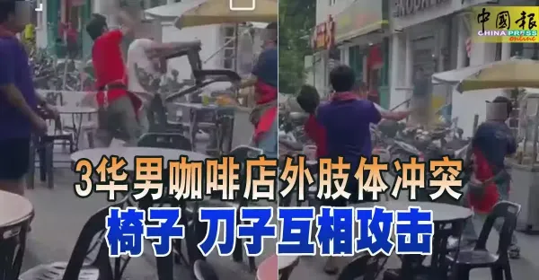 3華男咖啡店外肢體衝突 椅子 刀子互相攻擊