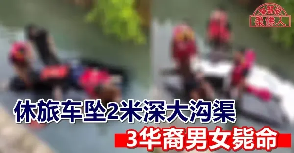 休旅車墜3公尺大溝渠 3華裔男女斃命