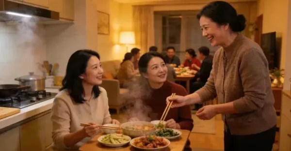 過年聚餐,大伯一句「女孩別上桌」,我媽笑著把我和妹妹趕進廚房,我以為她軟弱,她卻塞來筷子:趕緊吃,今晚一盤菜都別想端出去