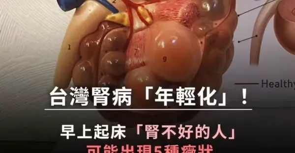 台灣腎病逐漸「年輕化」!早上起床「腎不好的人」可能出現5種症狀,若都沒有「恭喜腎還很健康」