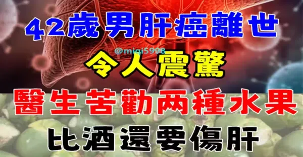 煙酒從來不沾 42歲男「肝癌離世」令人震驚 醫生苦勸兩種水果 比酒還要傷肝 不要再吃了