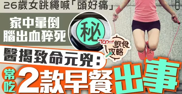 腦出血|26歲女跳繩突腦出血身亡 醫生揭致命原因:常吃2種食物出事