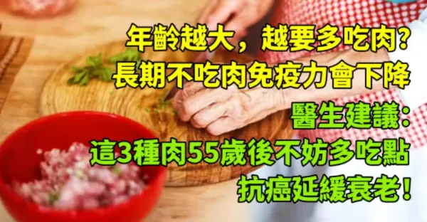 年齡越大,越要多吃肉?「長期不吃肉」免疫力會下降 醫生建議:這3種肉「55歲後不妨多吃點」抗癌延緩衰老~