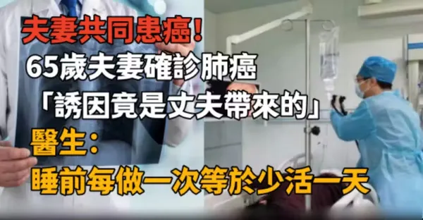 夫妻共同患癌!65歲夫妻確診肺癌「誘因竟是丈夫帶來的」 醫生:睡前每做一次等於少活一天.