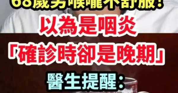 喉嚨不舒服以為是咽炎 ,68歲男「確診時卻是晚期」醫生提醒:不要每天都喝「這種飲料了」