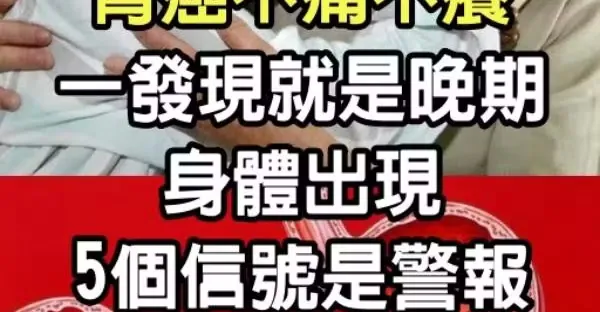 胃癌不痛不癢,一發現就是晚期,身體出現「5個信號」是警報,別再忽視了