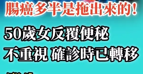 腸癌多半是拖出來的!50歲女「反覆便秘不重視」確診時已轉移 醫生「身體出現5種異常」最好去查腸鏡