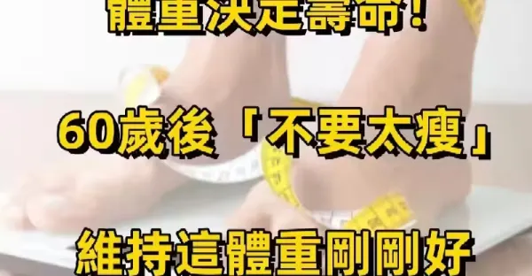 體重決定了壽命!!「60歲後不要太瘦」維持這樣體重剛好 學會3招保持「晚年健康生活」