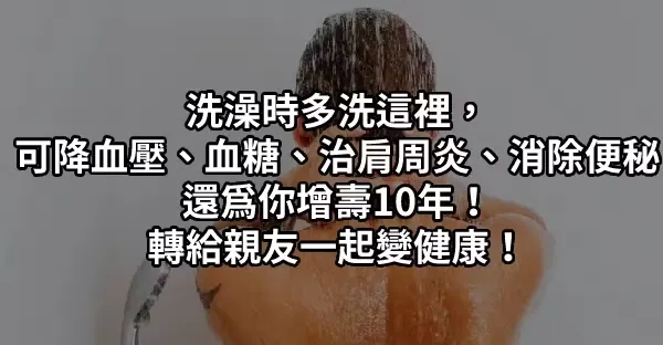洗澡時多洗這裡, 可降血壓、血糖、治肩周炎、消除便秘 還為你增壽10年!轉給親友一起變健康