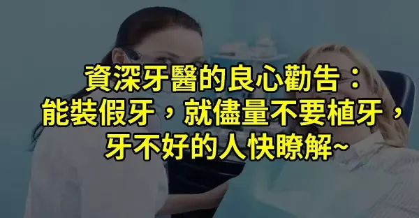 資深牙醫的良心勸告: 能裝假牙,就儘量不要植牙, 牙不好的人快瞭解~