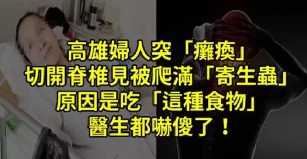 高雄婦人突「癱瘓」,切開脊椎見被爬滿「寄生蟲」!原因是吃「此種食物」醫生都嚇傻了!