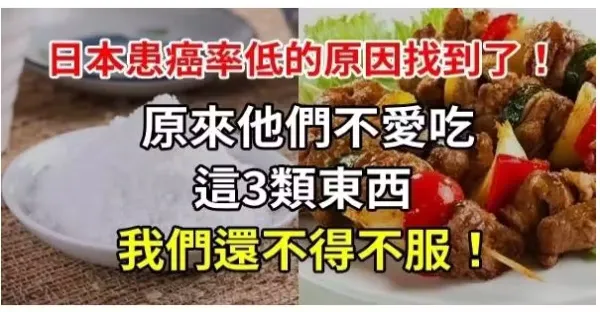 日本患癌率低的原因找到了!原來他們不愛吃「3類東西」,我們不得不服!!