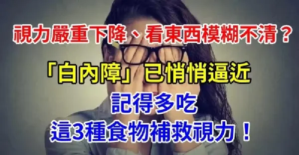 視力嚴重下降、看東西模糊不清?「白內障」已悄悄逼近,多吃這「3種食物」補救視力!