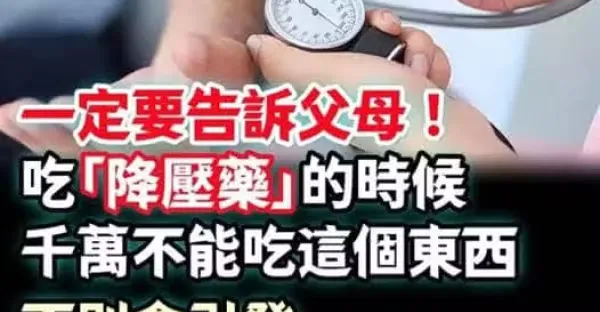 一定要告訴父母!吃「降壓藥」的時候,千萬不能吃這個東西,否則會引發「心肌梗死或中風」,嚴重的危及生命!