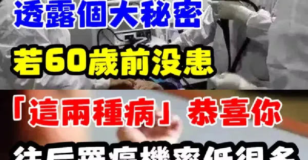 醫生透露個大秘密!若60歲前沒患「這兩種病」恭喜你:往後罹癌機率低很多