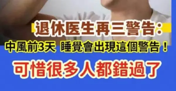 退休醫生再三警告 中風前3天, 睡覺會出現這個訊號 ! 早1天發現都能救命, 可惜很多人都錯過了