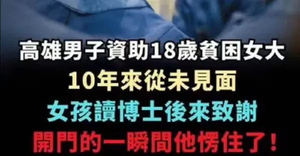 高雄男子資助18歲貧困女大,十年來從未見面,女孩讀博士後來致謝,開門的一瞬間他愣住了!