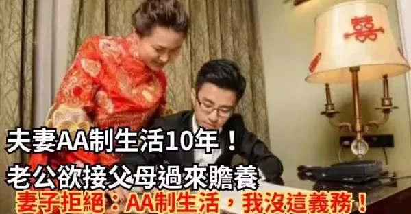 夫妻AA制生活10年!老公想接父母過來贍養,妻子卻拒絕:「AA制的生活,我沒這義務!」