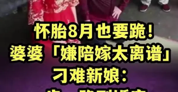 懷胎8月也要跪!婆婆「嫌陪嫁太離譜」刁難新娘:一步一跪到婚房 下秒「兒子的反應」震驚在場賓客!