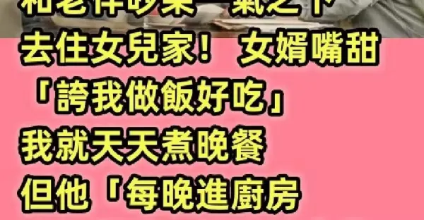 和老伴吵架一氣之下去住女兒家! 女婿嘴甜「誇我做飯好吃」我就天天煮晚餐,但他「每晚進廚房奇怪舉動」讓我很介意…直到親家母來一趟我才恍然大悟!