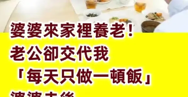 婆婆來家裡養老!老公卻交代我「每天只做一頓飯」 婆婆走後「得知真相」暴氣:一直被蒙在鼓裡