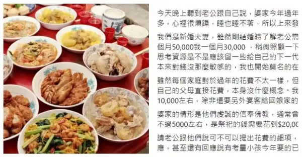 以往過年都是婆婆辦年貨,我和先生出錢,但今年光年菜、祭祀、年貨就要2萬6,是真的不太理解...想問婆婆花費細項被拒絕了,好像我是壞媳婦...我知道每家過年花費不一,但2萬6是合理的嗎😩😩 #眾網友出面解答